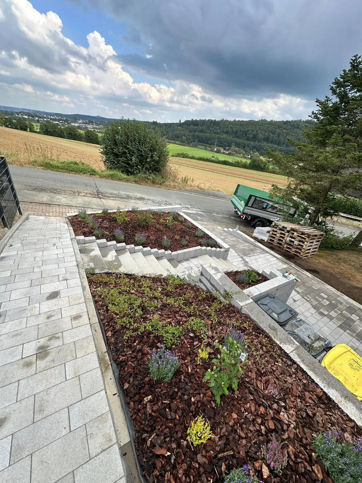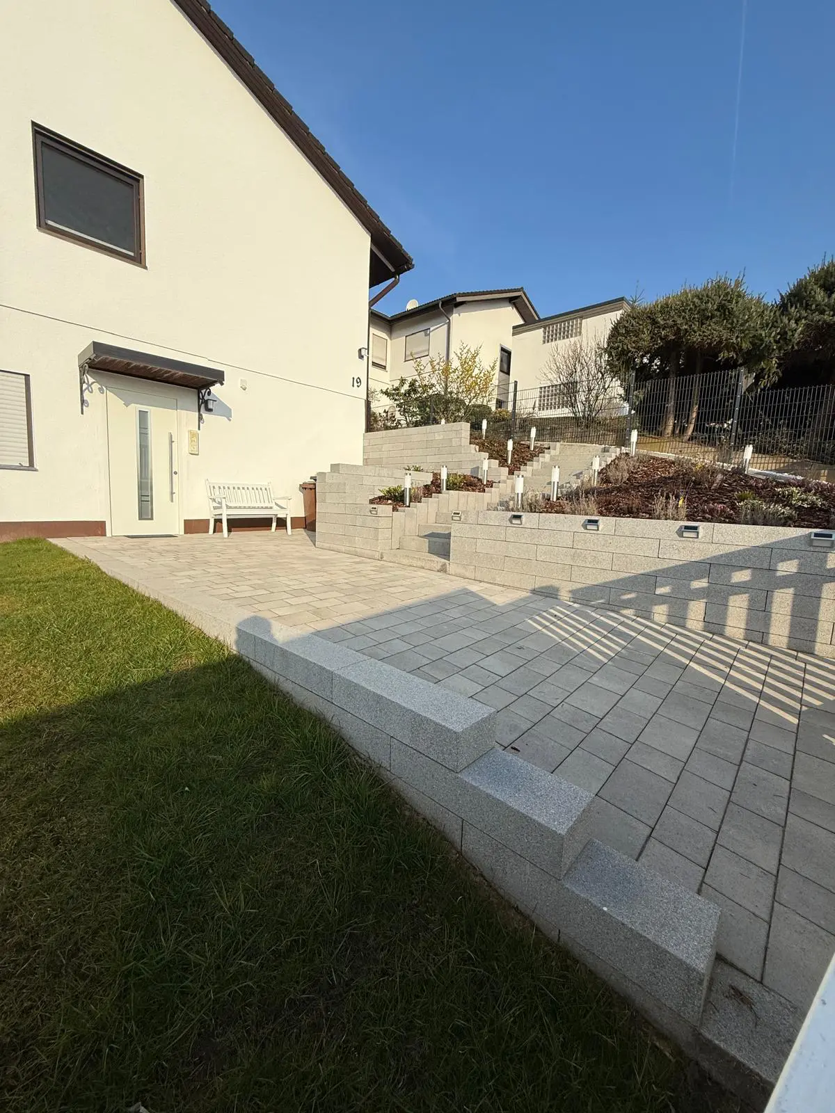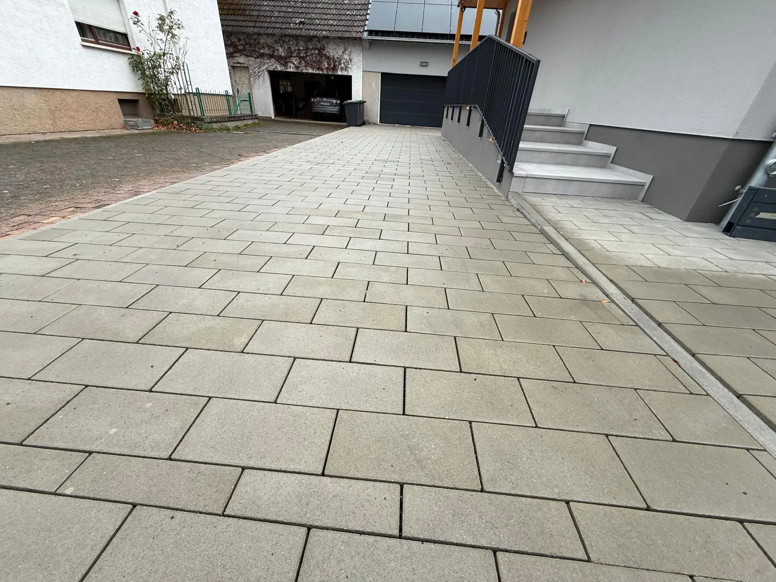 Hof-/Einfahrtpflaster – Pflasterarbeiten für belastbare FlächeGartenweg mit Rasenkante – saubere Randsteine und Rasenfläche