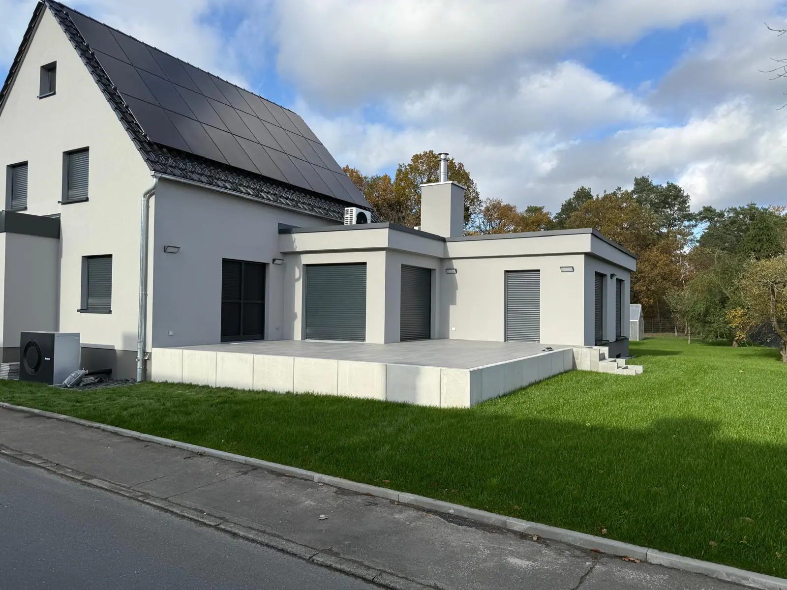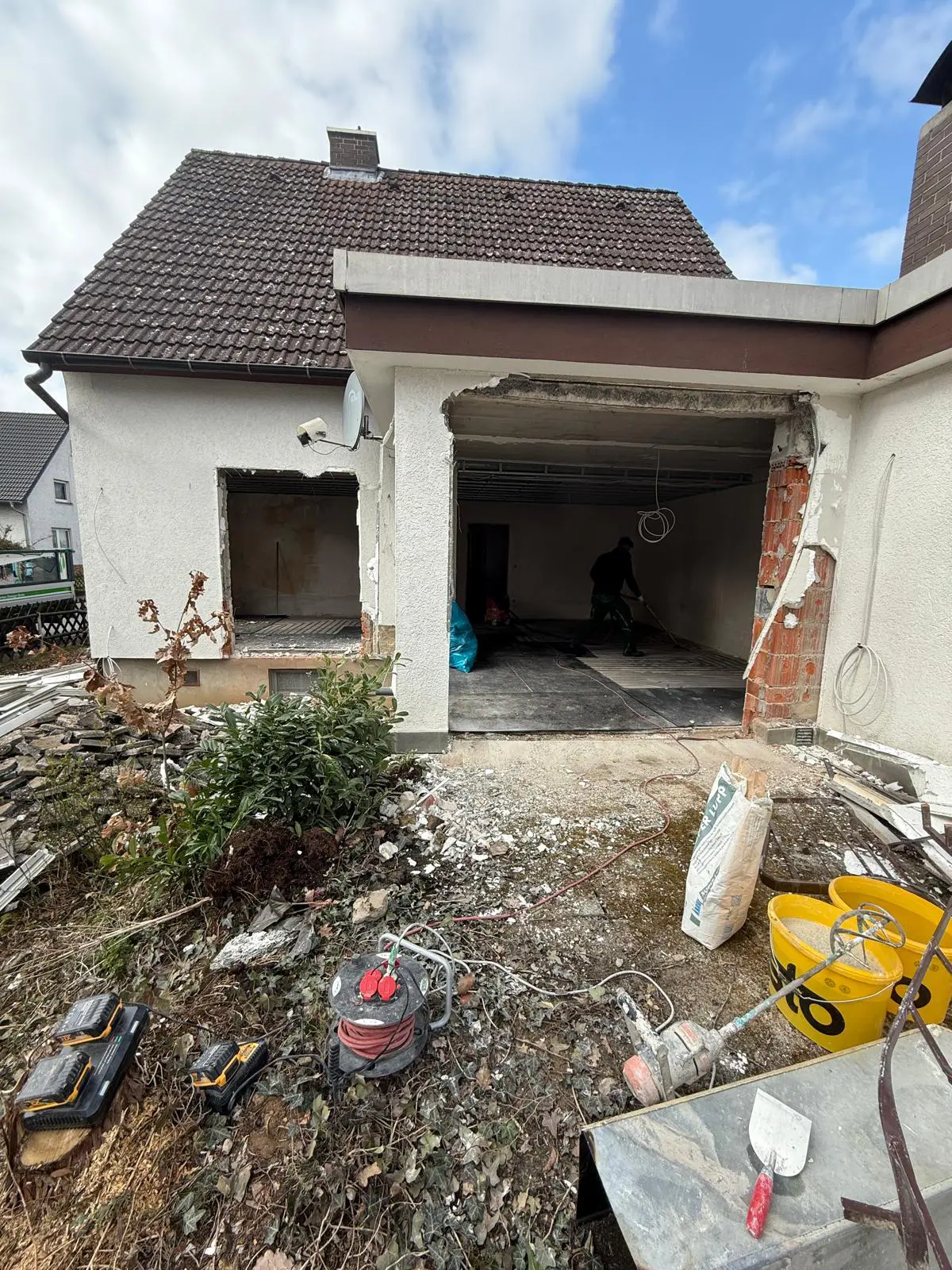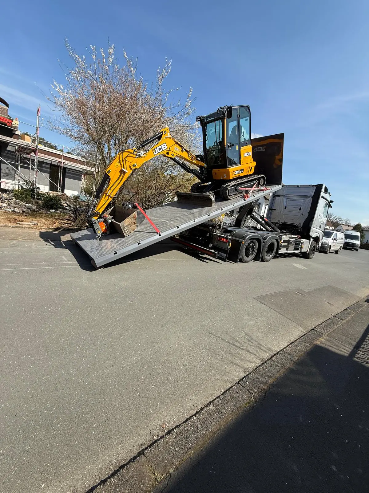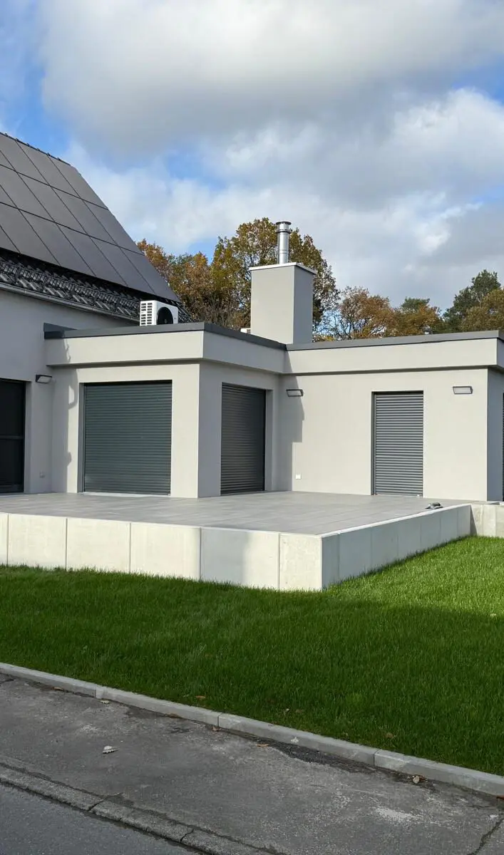 Baggerarbeiten auf Baustelle – Aushub und GeländeprofilierungGepflasterter Hofbereich – Fläche vorbereitet und verdichtet