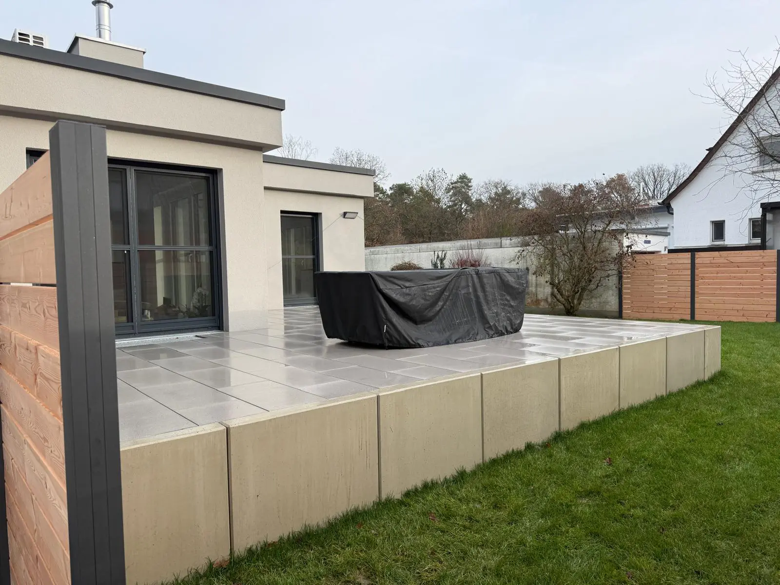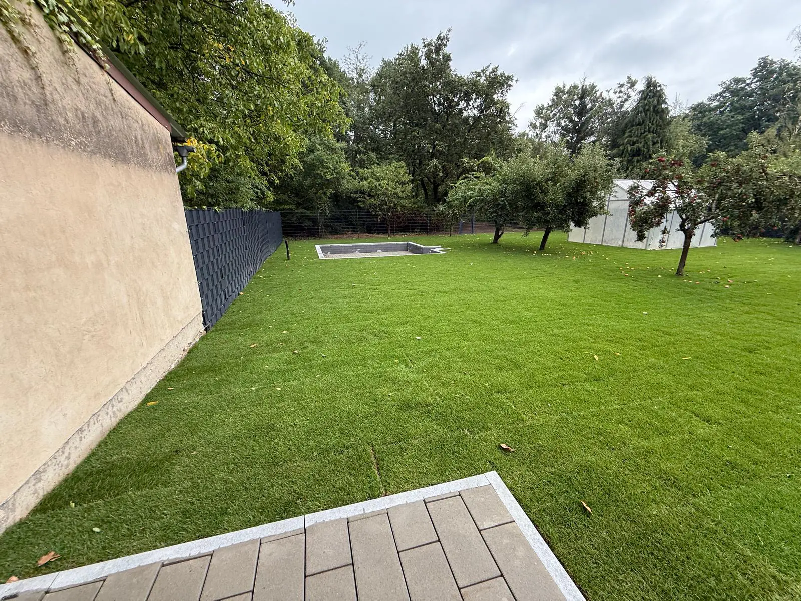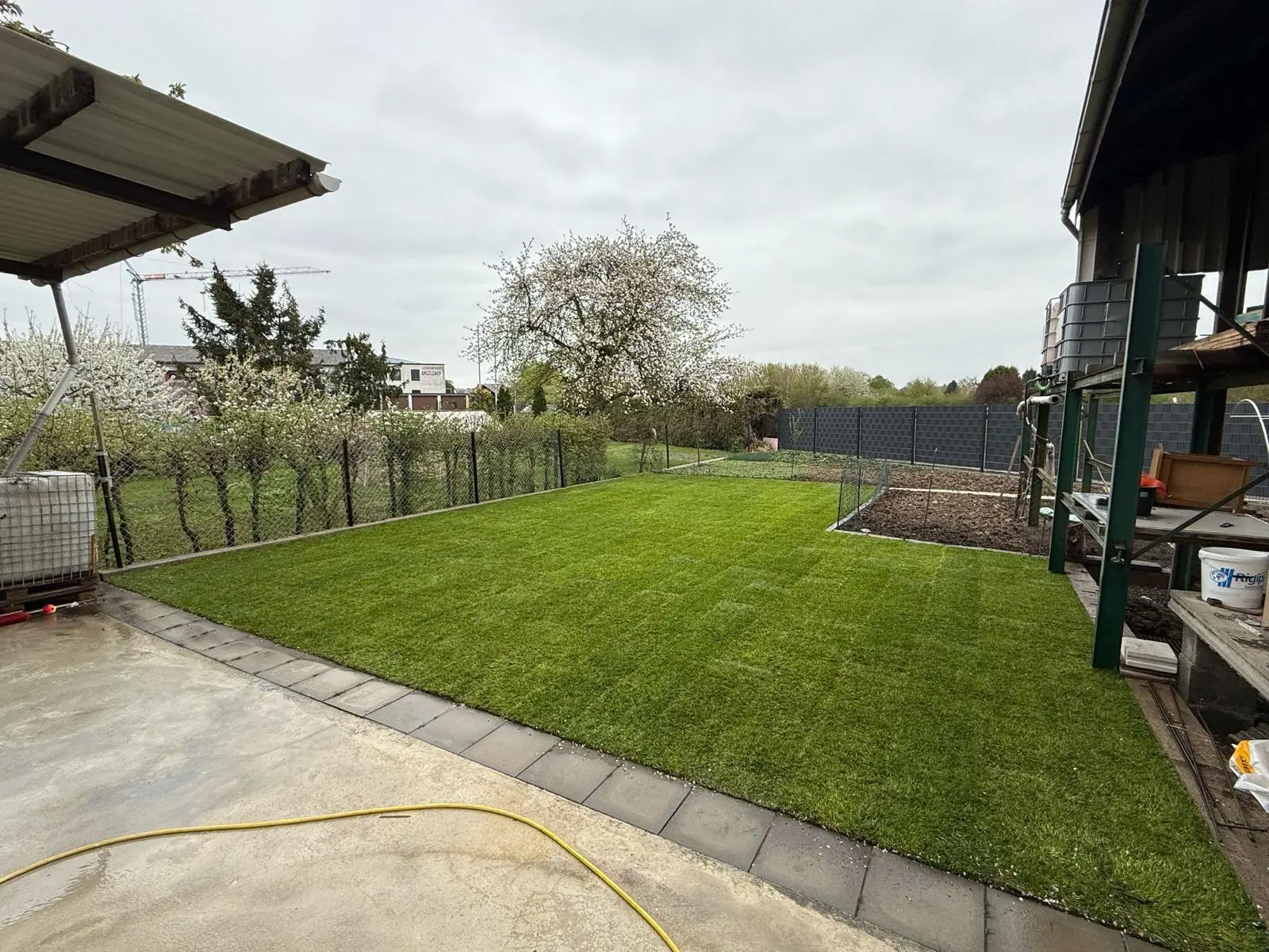 Gartenfläche nach Erdarbeiten – Vorbereitung für Neuanlage/BeetRollrasenfläche mit Rasenkante – Rasenarbeiten in Wetzlar